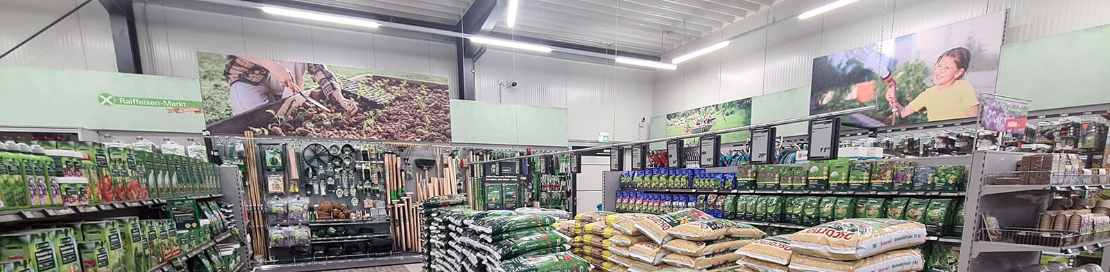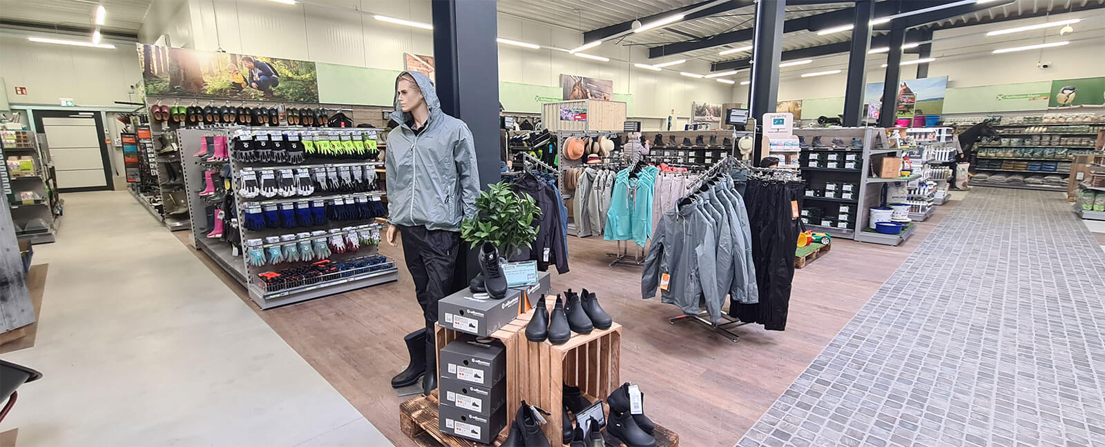 Im Außenbereich gibt es nun eine überdachte Fläche für Gartenprodukte und Pflanzen. Dort lässt sich nach Herzenslust shoppen und stöbern und Inspiration für die kommende Gartensaison sammeln. Und auch der Innenraum überzeugt mit moderner Atmosphäre und gefragten Produkten aus den Bereichen Haus und Garten, Reitsport, Haustier und Hobbyfarming sowie Textilien. Darunter viele Eigenmarken mit starkem Preis-Leistungs-Verhältnis.