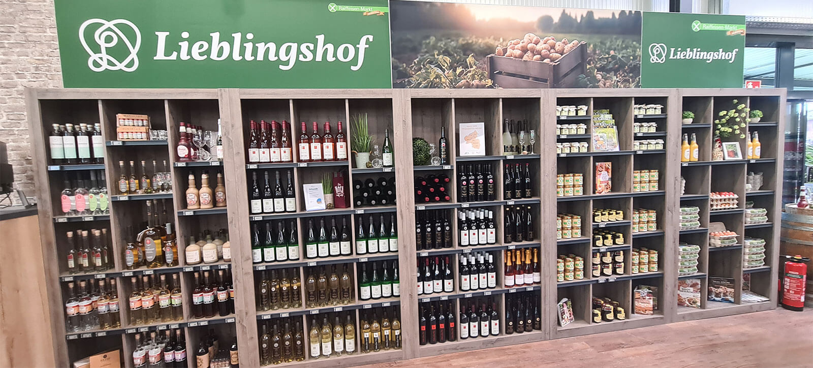 Raiffeisen-Markt Vreden - Mitarbeiter vor dem EingangRaiffeisen-Markt Vreden - Innenansicht TierbedarfRaiffeisen-Markt Vreden - Innenansicht Lieblingshof WeinRaiffeisen-Markt Vreden - Innenansicht TextilienRaiffeisen-Markt Vreden - Innenansicht Garten
